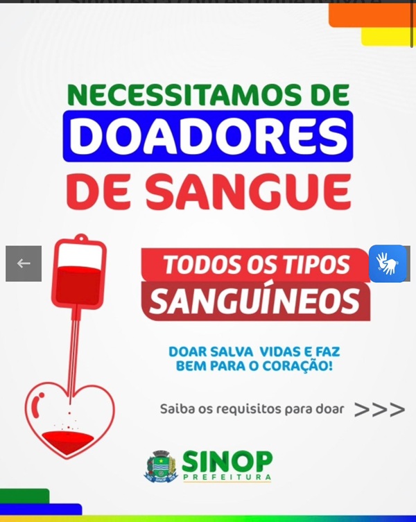 UCT SINOP ESTÁ COM ESTOQUE BAIXO E CONVOCA POPULAÇÃO PARA DOAÇÕES DE TODAS AS TIPAGENS